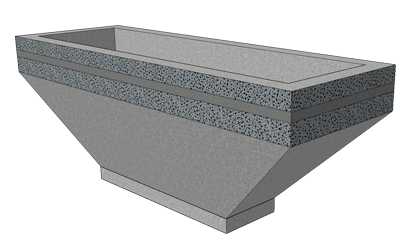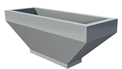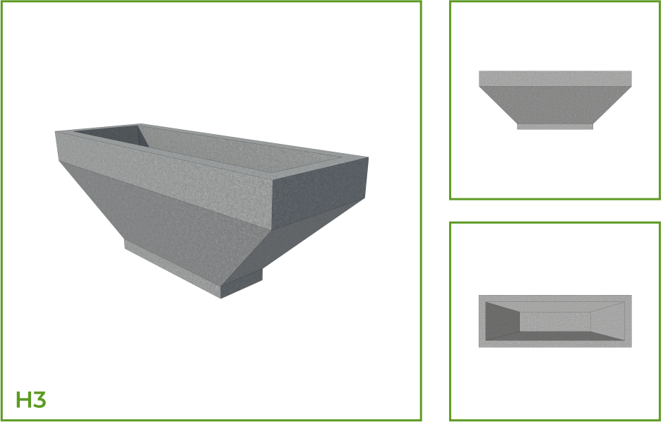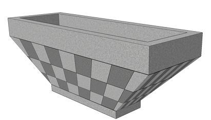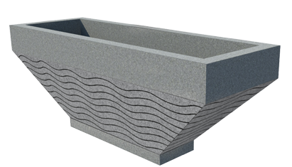 DESCRIPTION: This rectangular shaped pot has a wide, open mouth that narrows towards the foot. The highly utilitarian pot blends well with all kinds of spaces as a planter. The different variants available in this design are a combination of horizontal textured bands, parallel lines, chessboard design, and wavy parallel lines.