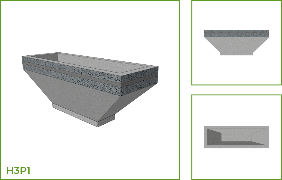 DESCRIPTION: This rectangular shaped pot has a wide, open mouth that narrows towards the foot. The highly utilitarian pot blends well with all kinds of spaces as a planter. The different variants available in this design are a combination of horizontal textured bands, parallel lines, chessboard design, and wavy parallel lines.