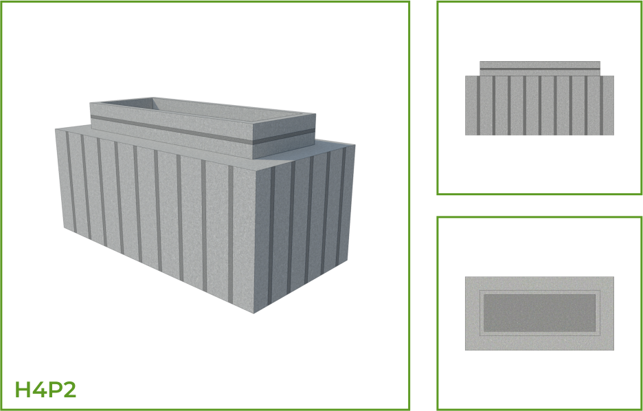 DESCRIPTION: Two rectangular compartments of different sizes fused into one single entity makes a simple piece of landscape pottery that enhances both interior and exterior spaces either as a single piece or a number of pieces. The plantation pot may also be used to create barricades when arranged as a group. This pot may be customized into several patterned pieces like parallel and horizontal lines that run along the entire body, a combination of slanting lines and vertical sections, a combination of horizontal lines and segments of slanting lines.