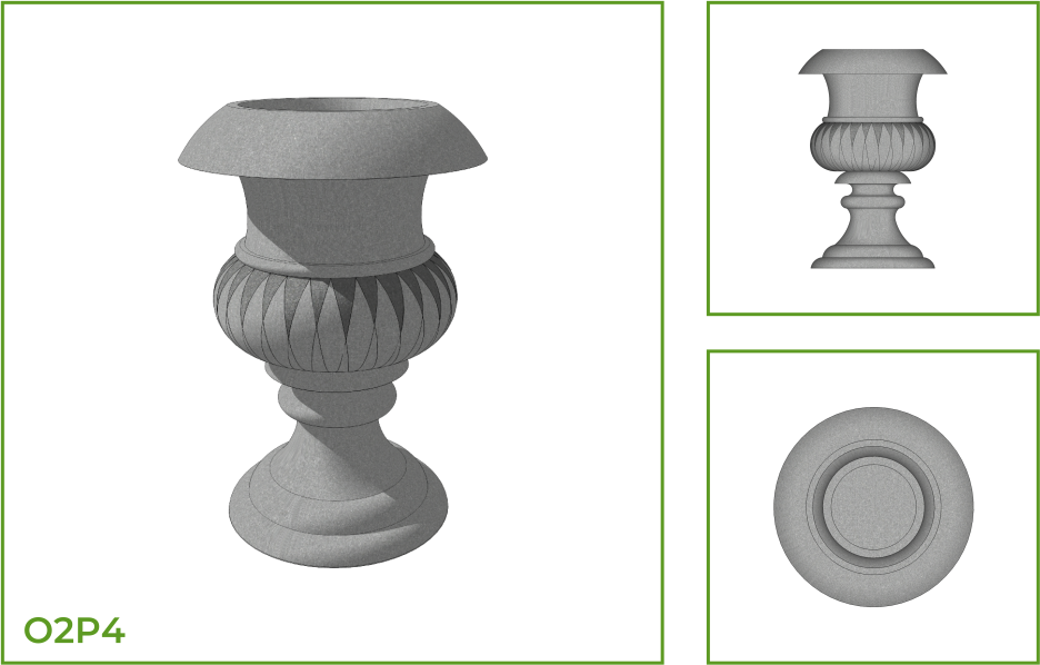 DESCRIPTION: This is vase shaped pot with a very ornamental design comprised of a distinct rim, belly and foot. The rim of this pot is flared and the wide neck leads to a bulging convex that leads to a flared foot. This is a plantation pot which draws spotlight towards all kinds of spaces, singularly or as a group. This unique design is available in a variety of patterns such as vertically ribbed belly, horizontal rings and geometric and wavy patterns.