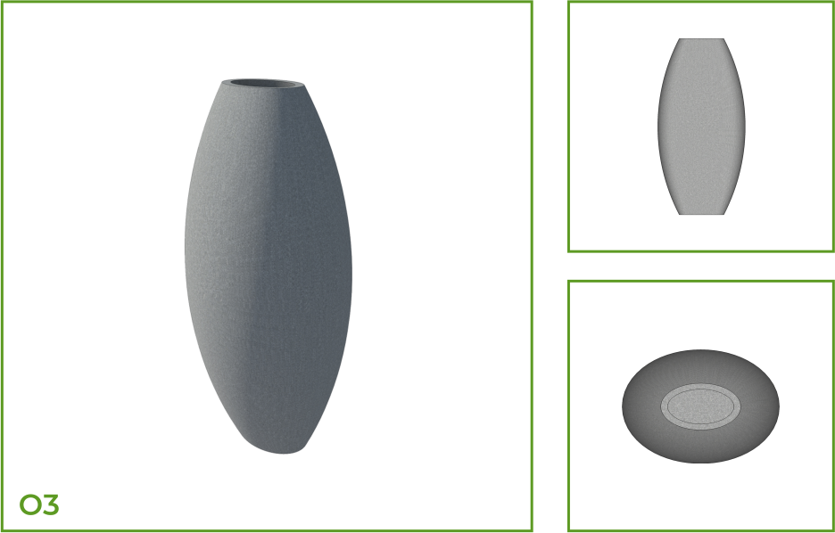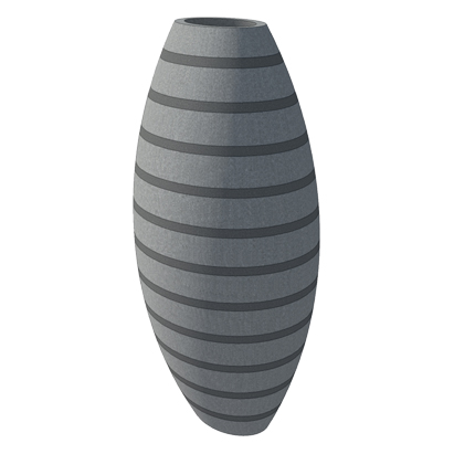 DESCRIPTION: The oval shaped pot represents a clean and simple design that is both elegant and contemporary and enlivens both interior and exterior spaces. This is available with interesting patterns like horizontal parallel rings, textures, thick horizontal parallel rings along the entire body, thin vertical wavy strands, and segments of thick slanting parallel lines.