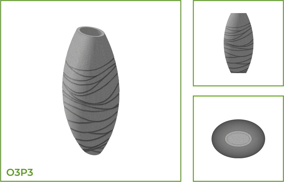 DESCRIPTION: The oval shaped pot represents a clean and simple design that is both elegant and contemporary and enlivens both interior and exterior spaces. This is available with interesting patterns like horizontal parallel rings, textures, thick horizontal parallel rings along the entire body, thin vertical wavy strands, and segments of thick slanting parallel lines.