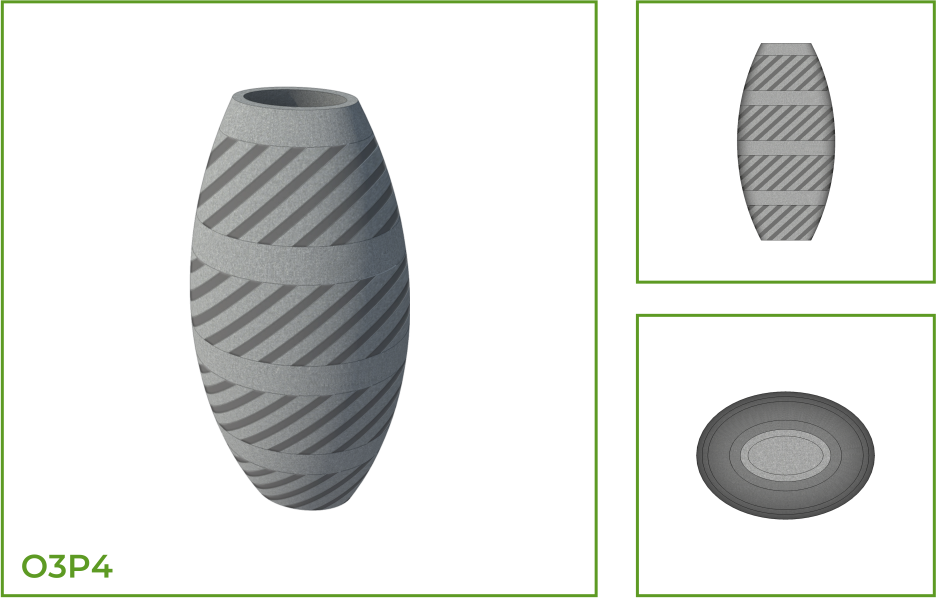 DESCRIPTION: The oval shaped pot represents a clean and simple design that is both elegant and contemporary and enlivens both interior and exterior spaces. This is available with interesting patterns like horizontal parallel rings, textures, thick horizontal parallel rings along the entire body, thin vertical wavy strands, and segments of thick slanting parallel lines.