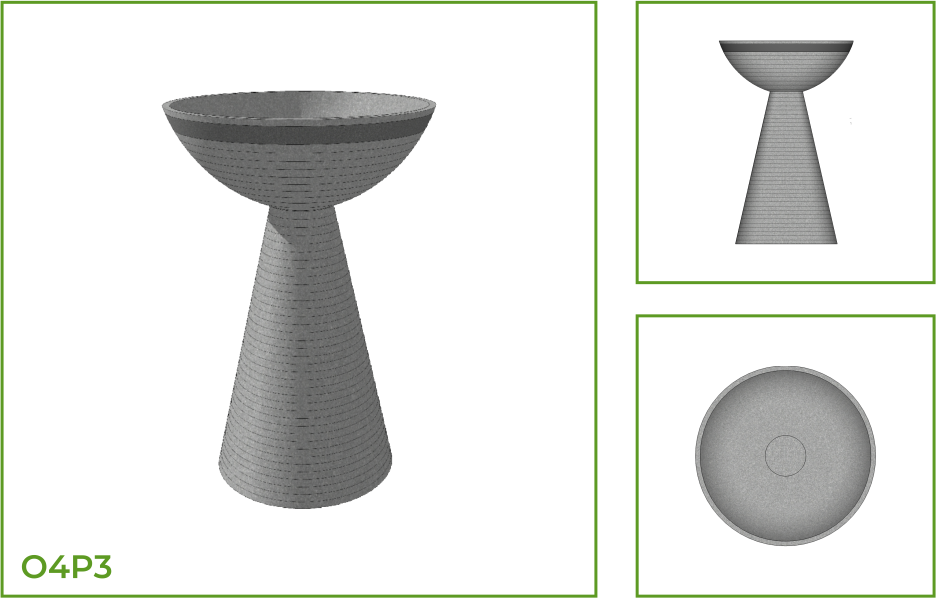 DESCRIPTION: This vertical pot is a composite structure made up of a bowl and a long conical pedestal that supports it. The landscape pot is ideal for exterior spaces as well as interiors. It comes with several patterns like foliage pattern along the entire structure, thick horizontal rings, dotted textures on the bowl. Also available are two composite patterns with thin horizontal lines along the rim area of the bowl with vertical line columns along the pedestal and thick horizontal rings along the bowl with a column of V shaped design on the pedestal.