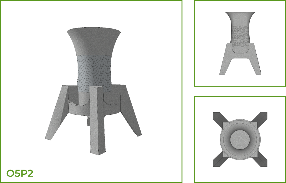 DESCRIPTION: This is a very unique pot which is also a composite structure with a chair like shape and a tower form that rests over it. The pot, crafted for plantation use adds layers of elegance to both interiors as well as exteriors. It may be used as a single piece or as a group. The patterns in this design that run along different segments of the tower like structure are thick and thin rings and wave patterns.