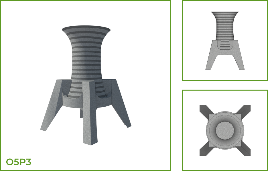 DESCRIPTION: This is a very unique pot which is also a composite structure with a chair like shape and a tower form that rests over it. The pot, crafted for plantation use adds layers of elegance to both interiors as well as exteriors. It may be used as a single piece or as a group. The patterns in this design that run along different segments of the tower like structure are thick and thin rings and wave patterns.