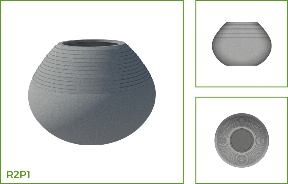 DESCRIPTION: This round pot has a narrow upper opening that broadens towards the lower part of the pot into a wide convex base. This plantation pot is a perfect fit into different kinds of spaces singularly or as a group. The design is available with customizations like thin circular rings, wavy and angular patterns. There is also a thick circular ring pattern that runs along the entire body of the pot.