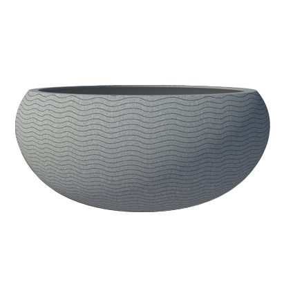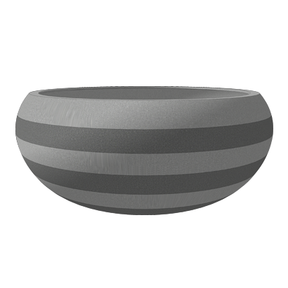 DESCRIPTION: This pot is shaped like a large deep bowl with a wide, open mouth that rests on a flat base. The pot is suited for plantation purposes and fits equally into external landscapes as well as interiors. It is available with several geometric patterns like arcs and angular line segments, thick rings, and wavy ring patterns.