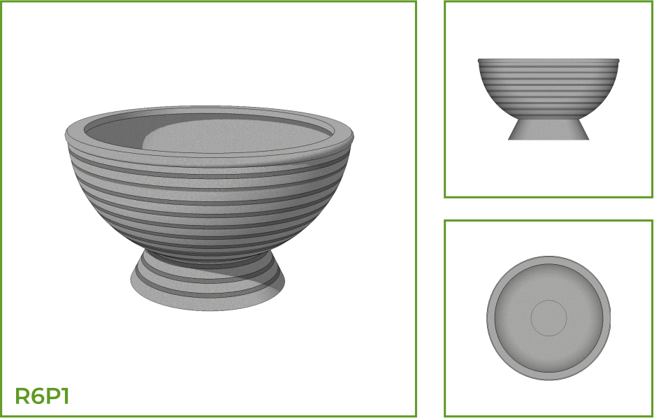 DESCRIPTION: This deep-bowl planter pot rests on a cone shaped foot which adds to the beauty of the form. This pot can be placed anywhere either singularly or as a group to accentuate the space. The high foot helps in the easy movement of the pot. The different patterns in this design are thick and thin rings, lotus and textured patterns.