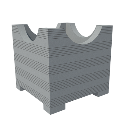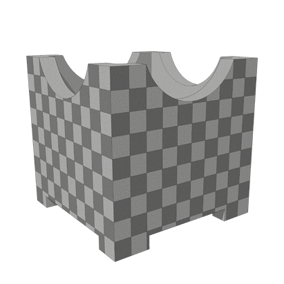 DESCRIPTION: This square pot with four legs is designed like a box with all four top edges concaving in the center to create a unique appearance. This planter is contained in design and adapts well into interior as well as exterior spaces, singularly or as a group as dividers. It is available with several interesting patterns on it such as thin horizontal parallel running lines, belts of six thin horizontal parallel lines, thin vertical lines and classic chess board design.