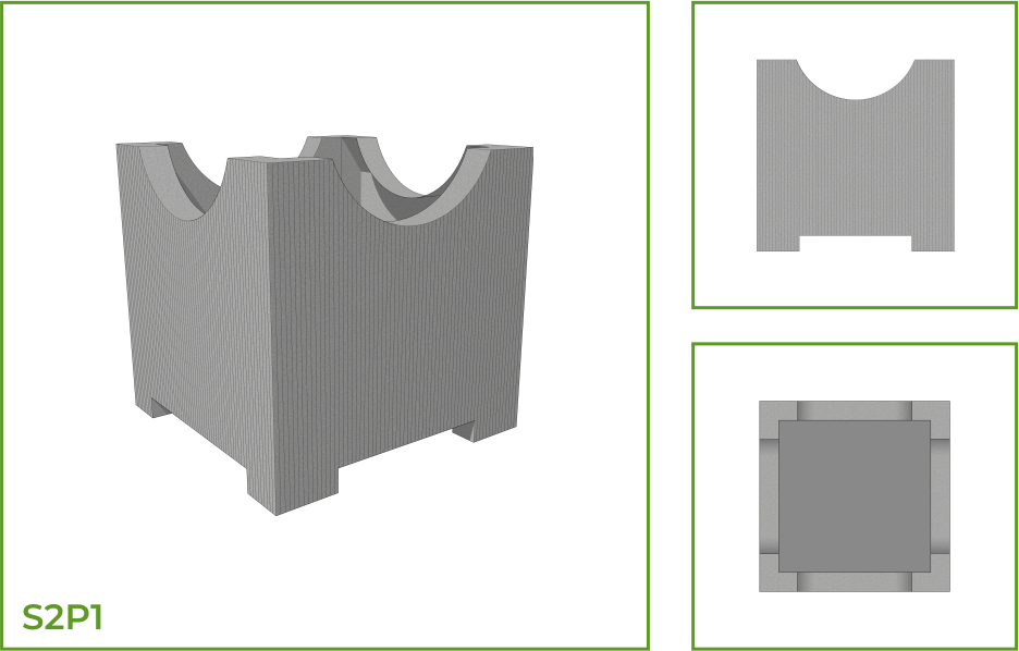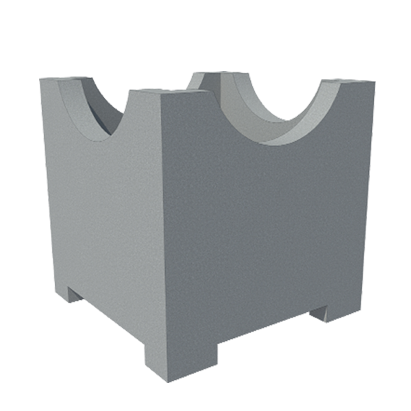DESCRIPTION: This square pot with four legs is designed like a box with all four top edges concaving in the center to create a unique appearance. This planter is contained in design and adapts well into interior as well as exterior spaces, singularly or as a group as dividers. It is available with several interesting patterns on it such as thin horizontal parallel running lines, belts of six thin horizontal parallel lines, thin vertical lines and classic chess board design.