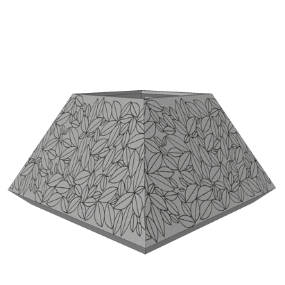 DESCRIPTION: This trapezium-shaped planter is narrow on the upper edge and broadens towards a wide flat base. The elegant design adds a dimension of class to every space that houses it. The pot may be used as a single piece or in an arrangement of several pieces. This pot is available in different patterns such as foliage, intersecting wavy lines, segments of geometric arcs and the simple slanting line design.