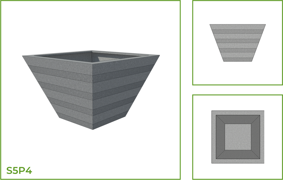DESCRIPTION: This is a unique pot with a wide mouth and a wide body that tapers down into a narrow flat base. With plants in it, this pot transforms itself into a perfect fit into both interior and exterior spaces. This planter comes with a variety of patterns like the chessboard, horizontal parallel lines that run along the entire body, segments of slanting lines and a belt of foliage pattern.