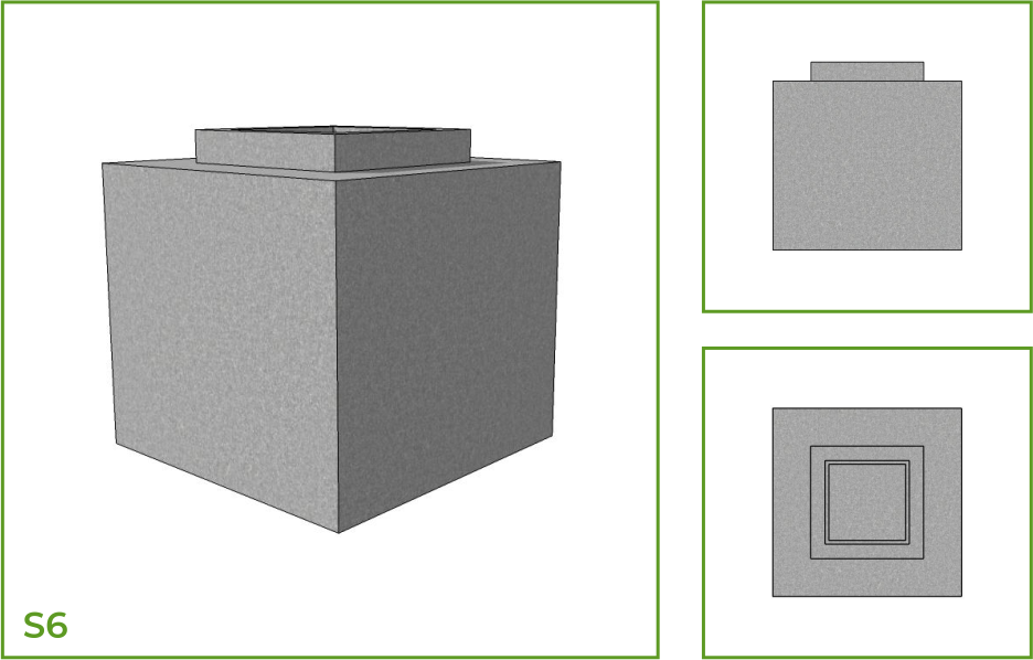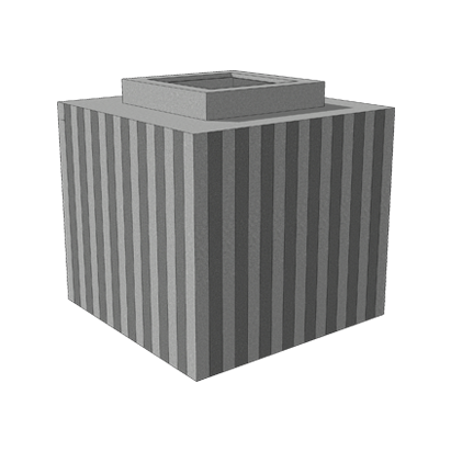 DESCRIPTION: The square pot has a small square neck that is fused onto a larger box structure to create a pot that is crafted specially to hold plants. The pot may be used as a single piece or several of them may be arranged side by side to create a boundary in both internal and external spaces. This is available in a number of patterns such as thin horizontal parallel lines, vertical lines and chessboard design.