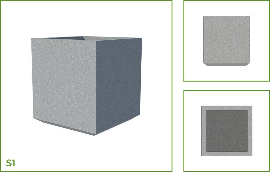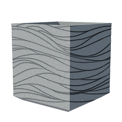 DESCRIPTION: This clean square shaped pot with an open mouth makes it a seamless blend into any kind of space. The pot may be used as a single piece or several pieces may be suitably arranged to mark boundaries. The plain pot can be customized into different pattern pots such as wave like structures that run across the entire pot, segments of vertical lines, thin and thick horizontal parallel lines.