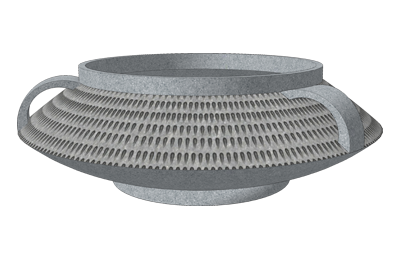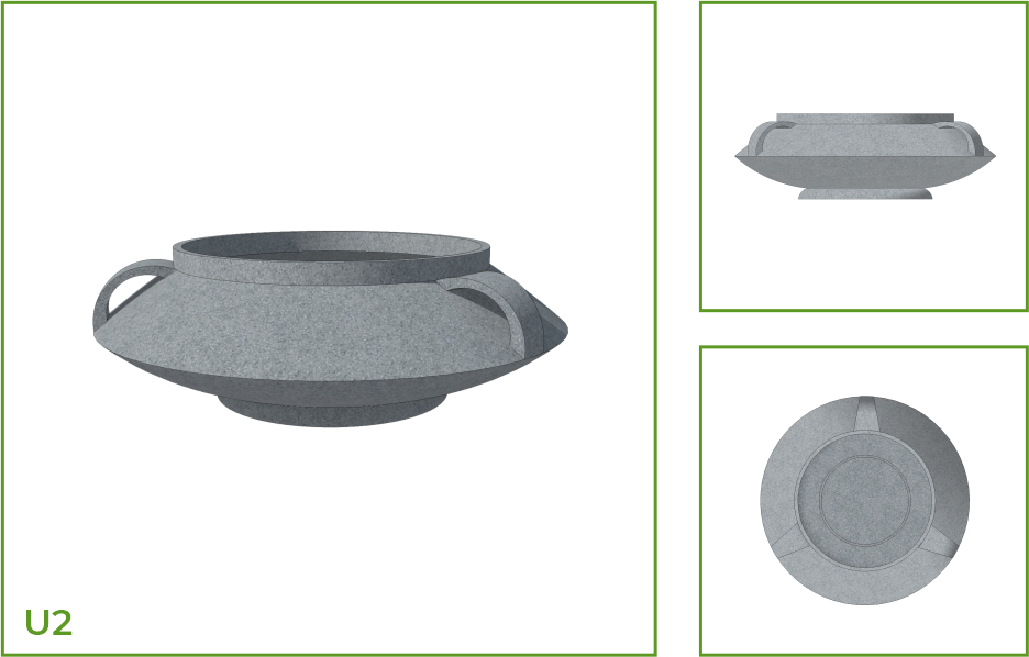 DESCRIPTION: This urli pot with a narrow neck and a wide belly rests on a small foot. The plantation pot which blends easily with interior and exterior and spaces comes with a handle on either side. Its design is capable of transforming the space as a single piece or as a collection. The customizations available in this line have patterns such as two thick rings, a segment of angular lines, and a patterned belly with thin lines.
