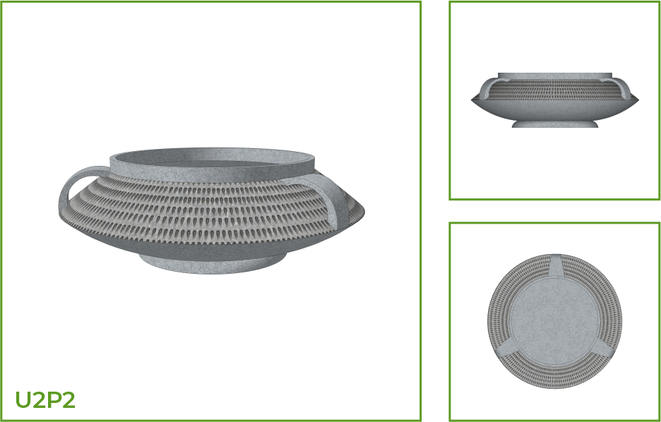 DESCRIPTION: This urli pot with a narrow neck and a wide belly rests on a small foot. The plantation pot which blends easily with interior and exterior and spaces comes with a handle on either side. Its design is capable of transforming the space as a single piece or as a collection. The customizations available in this line have patterns such as two thick rings, a segment of angular lines, and a patterned belly with thin lines.