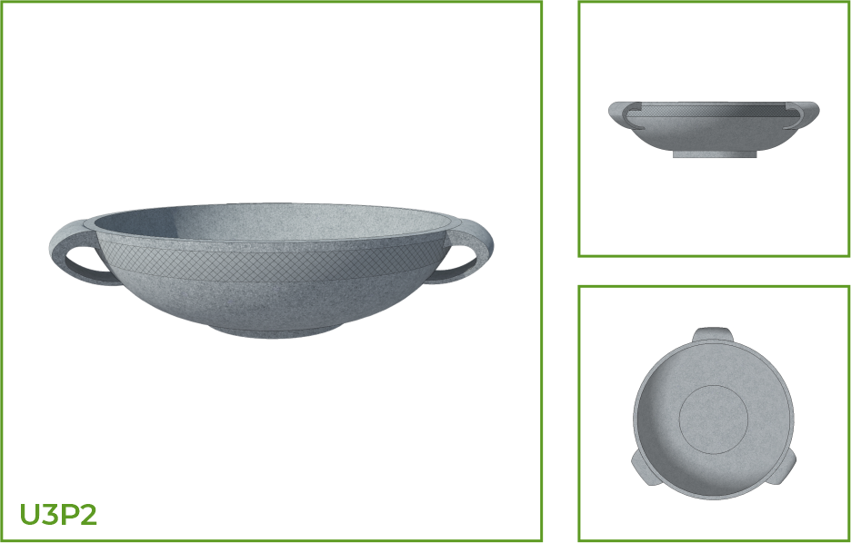 DESCRIPTION: This urli is shaped like a wide open bowl with short handles on either side which helps in easy movement of the pot. The convex belly rests on a small foot. This plantation pot transforms itself to support both traditional and contemporary spaces. The design offers patterns such as wavy and thin lines along the entire body, segments of intersecting slanting lines and arc patterns.