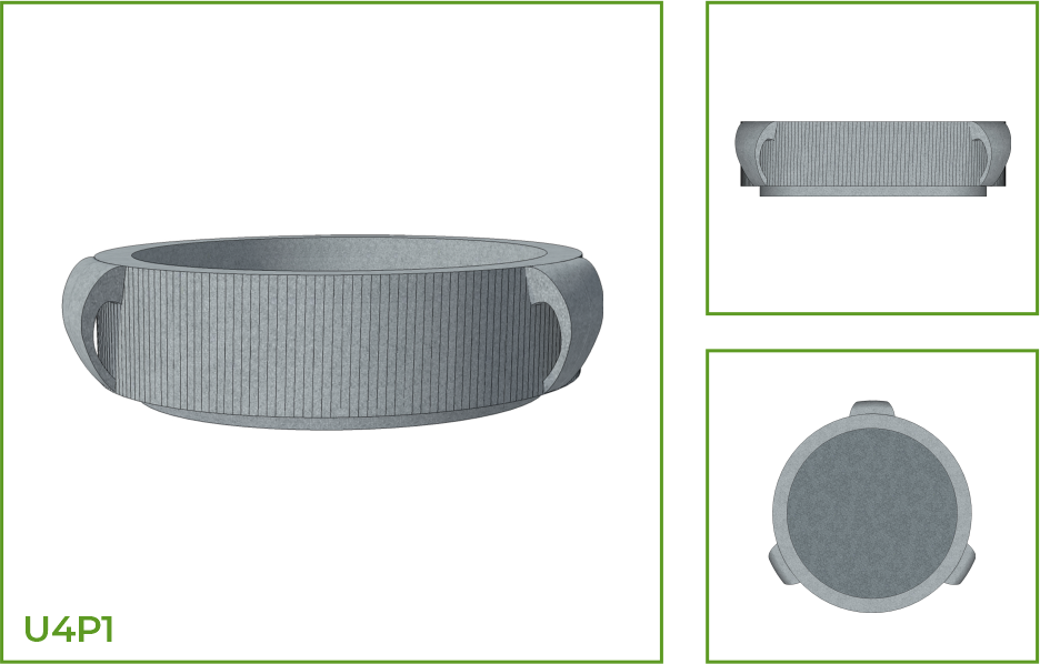 DESCRIPTION: This simple shaped urli with a wide, open mouth, straight sides and a flat wide base comes with a handle on either side. This pot when it holds plants adds elegance to interior and exterior spaces alike. The design is available with patterns on its body such as vertical lines, columns of square compartments with horizontal and vertical lines, belts of arrows and intersecting wavy lines.