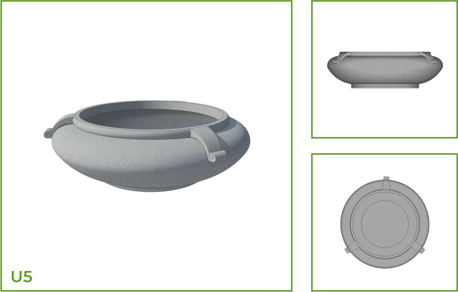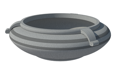 DESCRIPTION: This urli pot with a voluminous belly has an open mouth and a small foot. The short handles on either side add elegance to the form. The design of this landscape pot makes it an elegant accessory in interior, exterior as well as traditional and contemporary spaces. The customizations available are thick and thin rings around the body, lotus petal patterns and dotted texture.