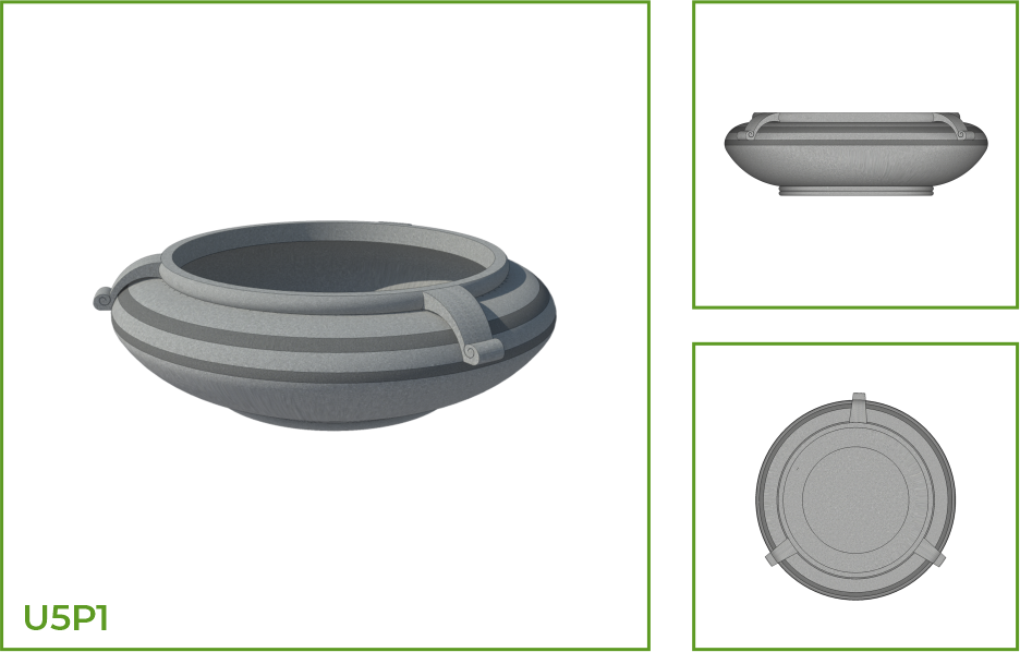 DESCRIPTION: This urli pot with a voluminous belly has an open mouth and a small foot. The short handles on either side add elegance to the form. The design of this landscape pot makes it an elegant accessory in interior, exterior as well as traditional and contemporary spaces. The customizations available are thick and thin rings around the body, lotus petal patterns and dotted texture.