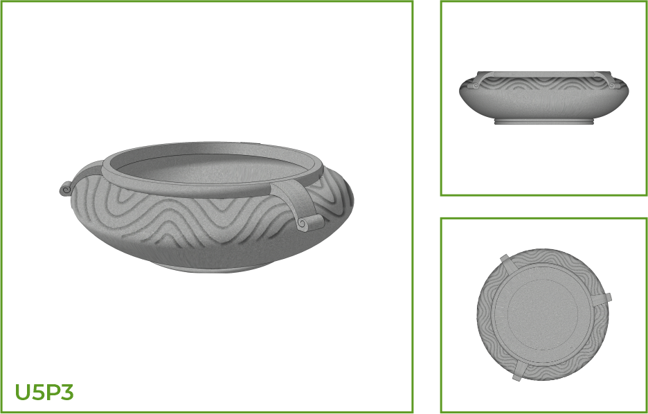 DESCRIPTION: This urli pot with a voluminous belly has an open mouth and a small foot. The short handles on either side add elegance to the form. The design of this landscape pot makes it an elegant accessory in interior, exterior as well as traditional and contemporary spaces. The customizations available are thick and thin rings around the body, lotus petal patterns and dotted texture.