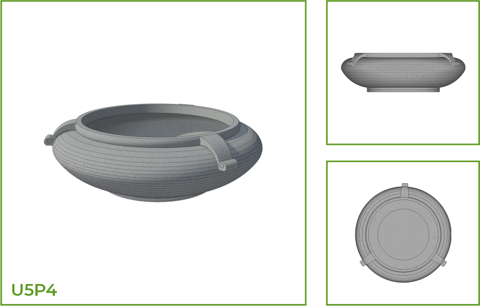 DESCRIPTION: This urli pot with a voluminous belly has an open mouth and a small foot. The short handles on either side add elegance to the form. The design of this landscape pot makes it an elegant accessory in interior, exterior as well as traditional and contemporary spaces. The customizations available are thick and thin rings around the body, lotus petal patterns and dotted texture.