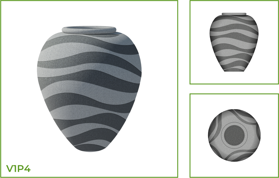 DESCRIPTION: This urn shaped pot has a narrow mouth with a wide belly the tapers into a small foot. This plantation pot can be placed in exterior as well as interior spaces, and is available in different customization such as floral and dotted patterns, ring like ridges along the upper half, and wave patterns that spreads across the body of the pot.