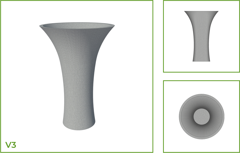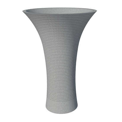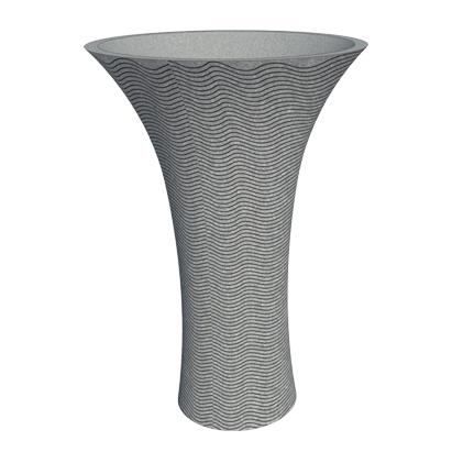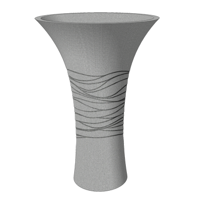 DESCRIPTION: This is a wide mouthed pot shaped like a vase that narrows towards the base. The simple and clean form of this pot makes it a perfect fit into both interior and exterior spaces, as a single piece or as a group. Several patterns are available to choose from such as circular ring patterns along the body, arc patterns, dotted textures and wavy lines.
