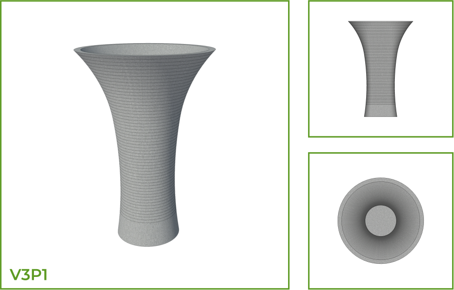 DESCRIPTION: This is a wide mouthed pot shaped like a vase that narrows towards the base. The simple and clean form of this pot makes it a perfect fit into both interior and exterior spaces, as a single piece or as a group. Several patterns are available to choose from such as circular ring patterns along the body, arc patterns, dotted textures and wavy lines.