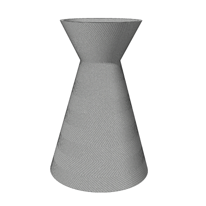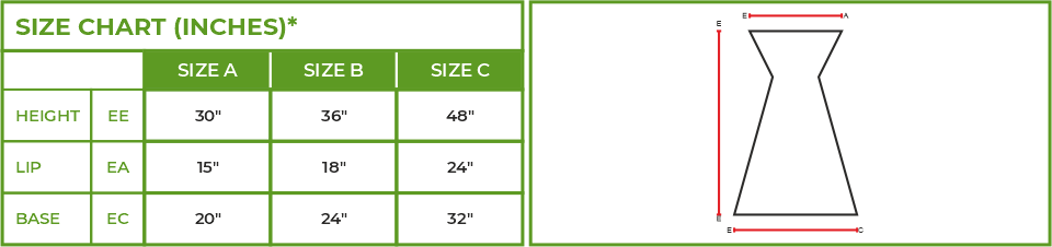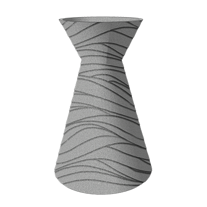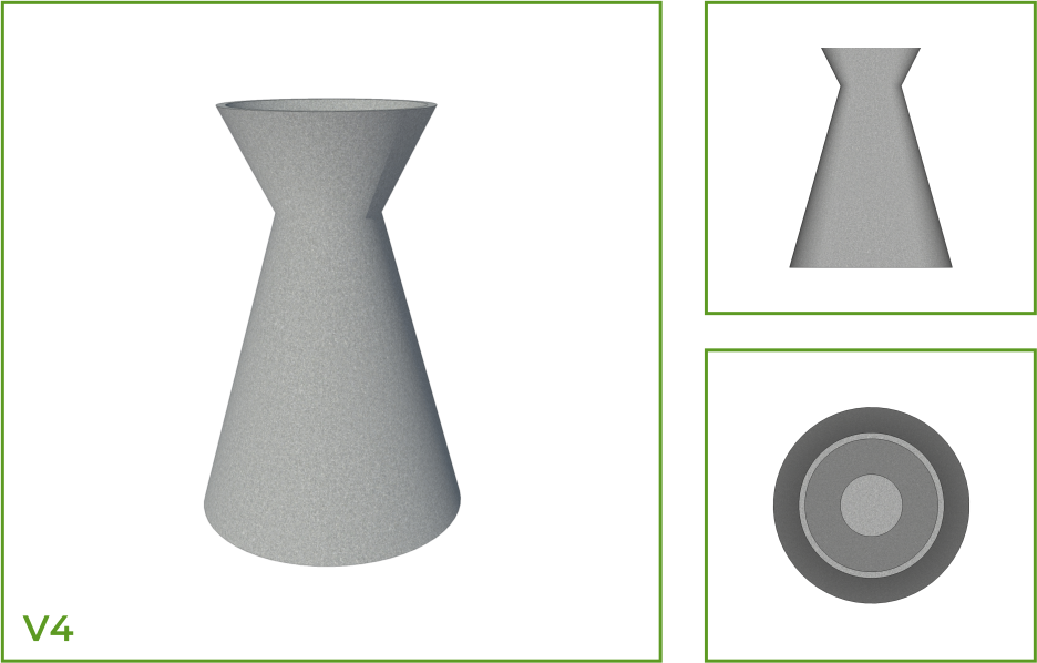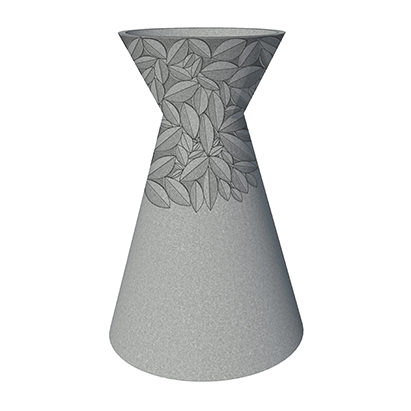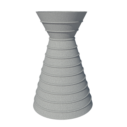 DESCRIPTION: This composite shaped pot has a funnel shaped neck that leads to a conical body. Designed for plantation purposes this pot can be placed in interior and exterior places alike. The patterns customized in this design are horizontal circular ridges, vertical lines and horizontal wavy lines around the body of the pot. A unique foliage pattern is also available.