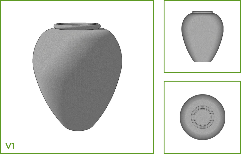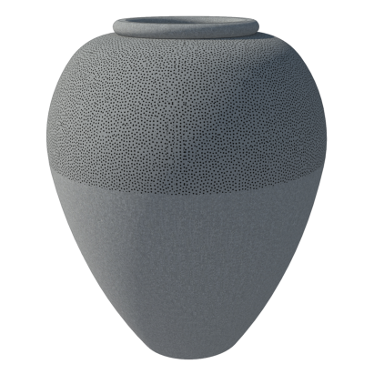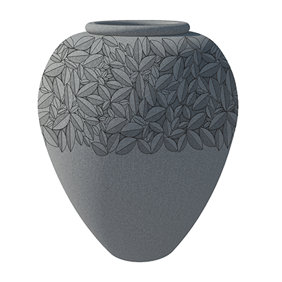 DESCRIPTION: This urn shaped pot has a narrow mouth with a wide belly the tapers into a small foot. This plantation pot can be placed in exterior as well as interior spaces, and is available in different customization such as floral and dotted patterns, ring like ridges along the upper half, and wave patterns that spreads across the body of the pot.